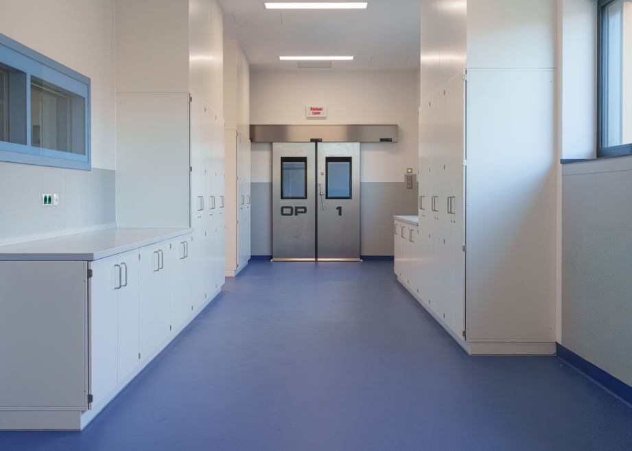 Großzügige, lichtdurchflutete Bereiche schaffen eine angenehme Atmosphäre und unterstützen effiziente Abläufe im Operationsbereich. Die Architektur, geplant von PL Architekten GmbH Aachen, folgt einem innovativen Prinzip. Besonders hervorzuheben ist die Integration neuester Medizintechnik, darunter ein OP-Roboter, der präzise und schonende Eingriffe ermöglicht. Die Raumstruktur ist flexibel gestaltet, sodass verschiedene Fachbereiche, von Gynäkologie über Kardiologie bis zur Anästhesie, optimal zusammenarbeiten können.
