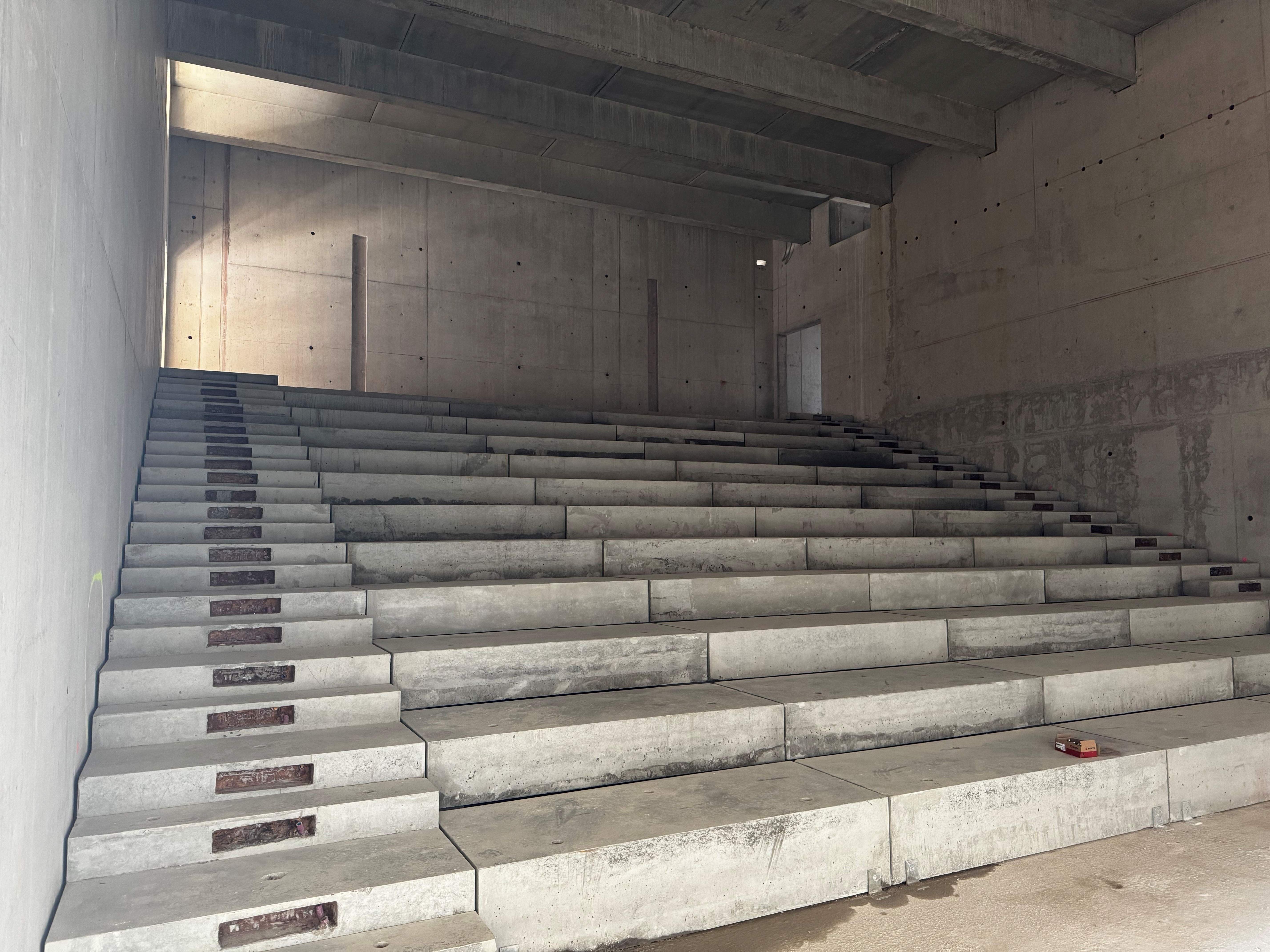 Das zentrale Lehrgebäude vereint Seminarräume, Büros, ein Skills Lab für praktische Übungen sowie zwei Hörsäle in einer kompakten, funktional organisierten Struktur. Ergänzt wird es durch eine Mensa mit Speisesaal und Cafeteria, die als sozialer Treffpunkt die Aufenthaltsqualität auf dem Campus stärkt. Die unmittelbar benachbarte Bibliothek bildet den ruhigen Gegenpol im Ensemble: ein Wissensort mit umfangreicher Lehrbuchsammlung, differenzierten Arbeitszonen und Raum für konzentrierte wie kollaborative Lernformen.